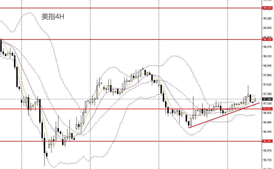 美元指数昨日收十字星,刺破10日均线,上探上方关键压力97.60-97.70,但多头动能未能持续,如短线继续维稳于97上方,后市有望再度挑战前高。