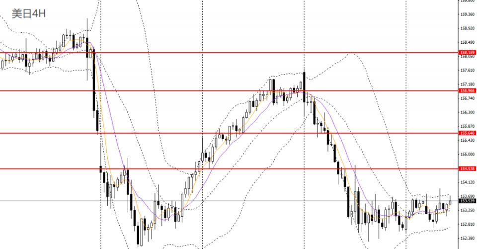 美日昨日收十字星,仍徘徊于5日均线附近,日线RSI小幅回升,4小时逼近154关口,但多头动能仍有限,稳健者建议保持观望。