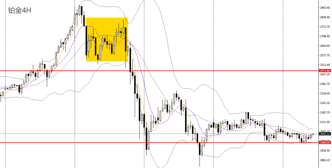 铂金收小阴线,4小时守住1980一线支撑,空头动能放缓,空单可暂时离场,稳健者建议观望为主。