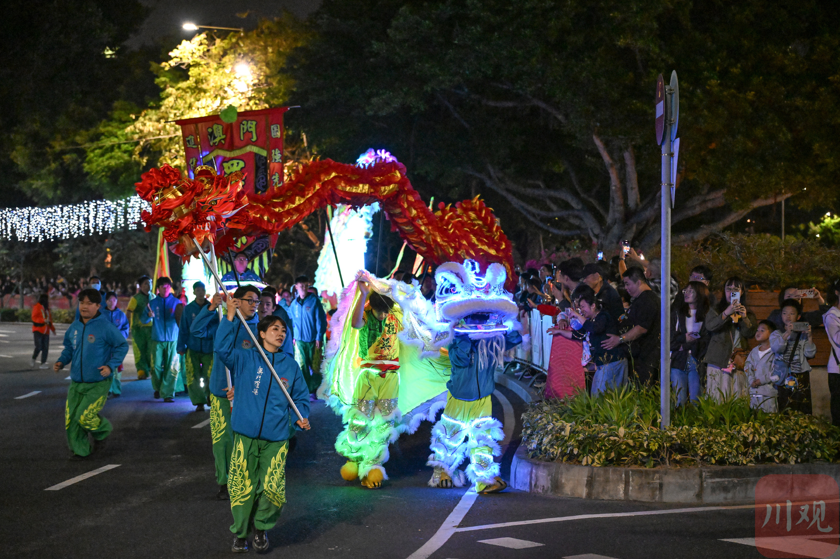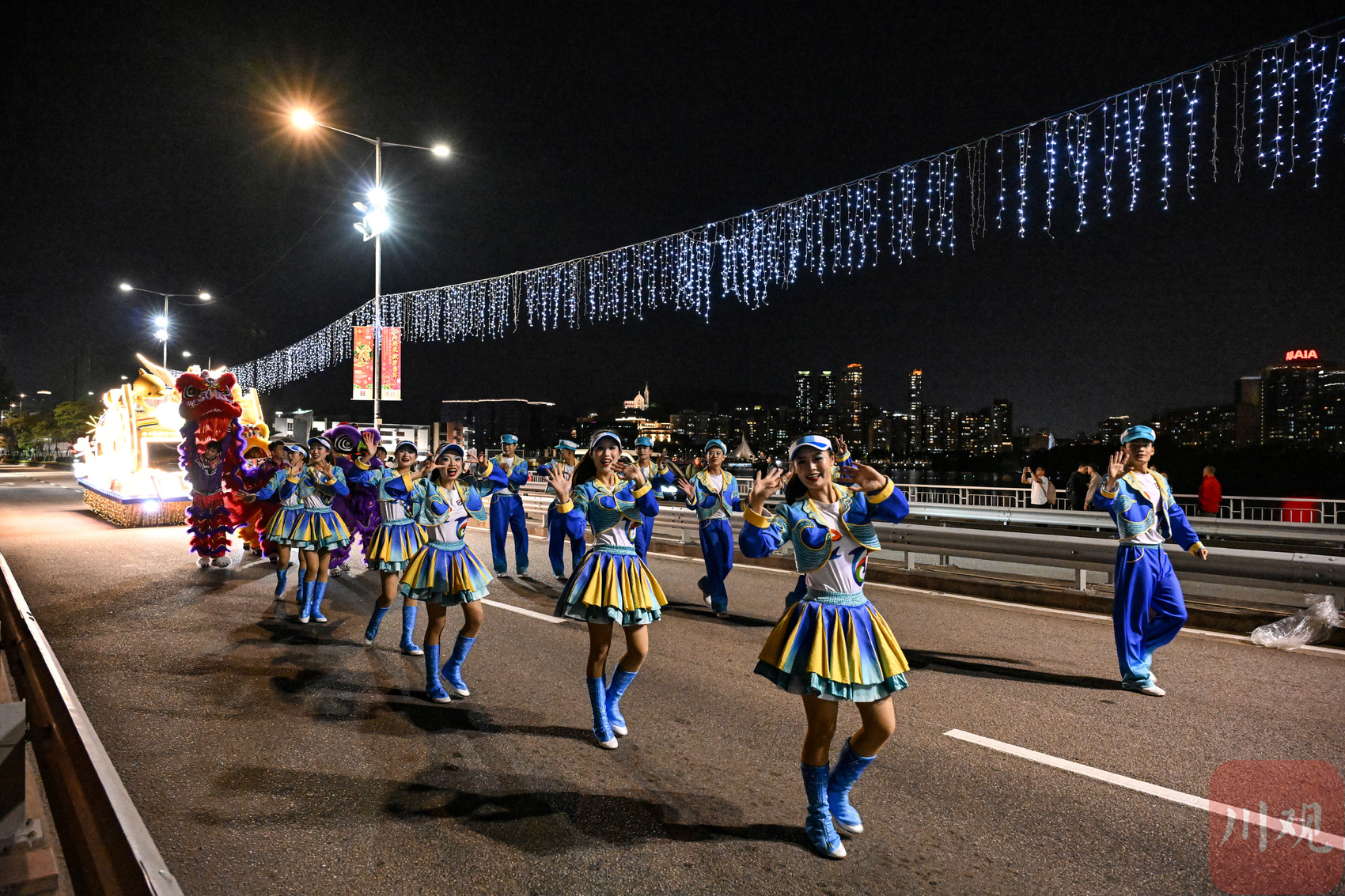 2026年2月19日晚,花车汇演队伍在澳门街头巡游。