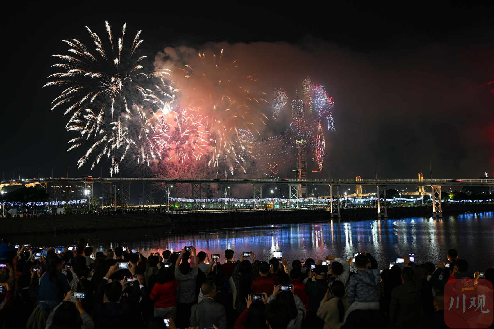 当晚,“金骏云翔 欢乐春节”2026无人机烟花汇演同步亮相,无人机与烟花创意融合,璀璨光影点亮澳门夜空,为海内外游客献上一场震撼视听的新春盛宴。