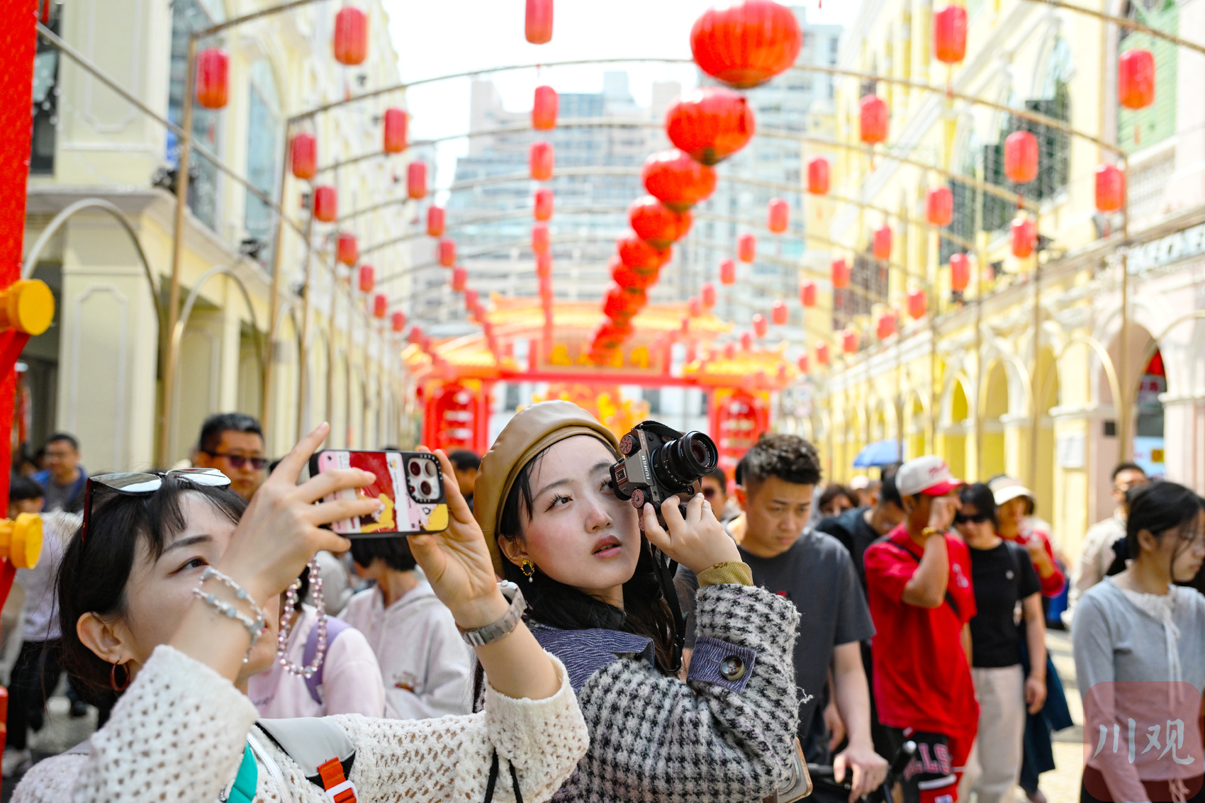 春节假日期间,澳门游人如织,来自五湖四海的游客来感受这座城市的独特魅力。