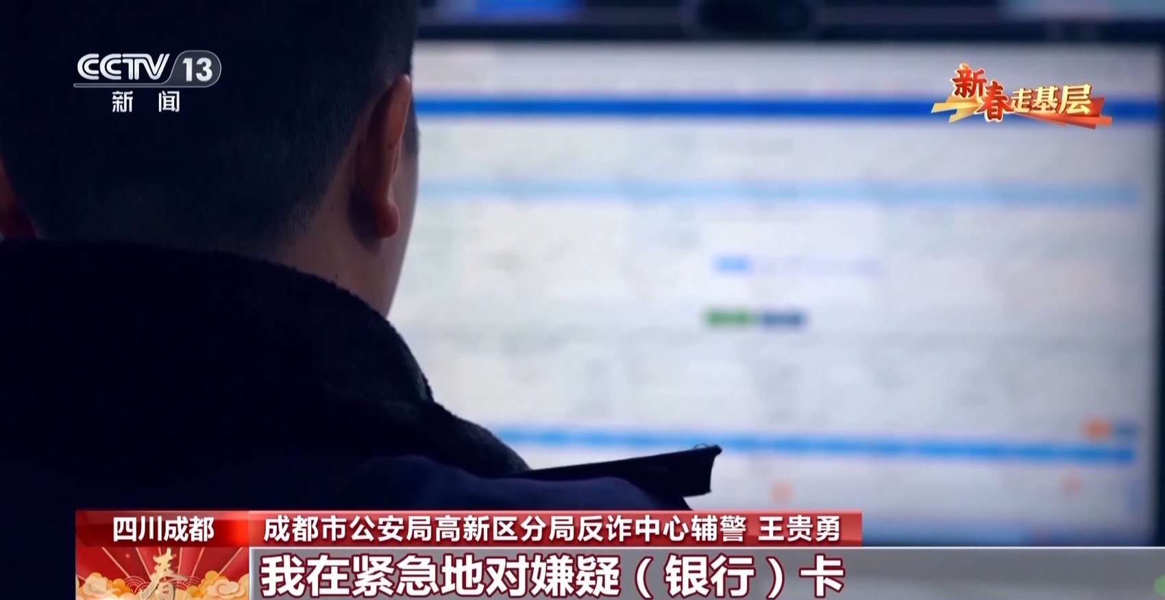 成都市公安局高新区分局反诈中心辅警 王贵勇:刚才肖家河派出所报了一个诈骗案,一个群众网上交友被骗了8万块钱。我在紧急对嫌疑银行卡采取止付措施。