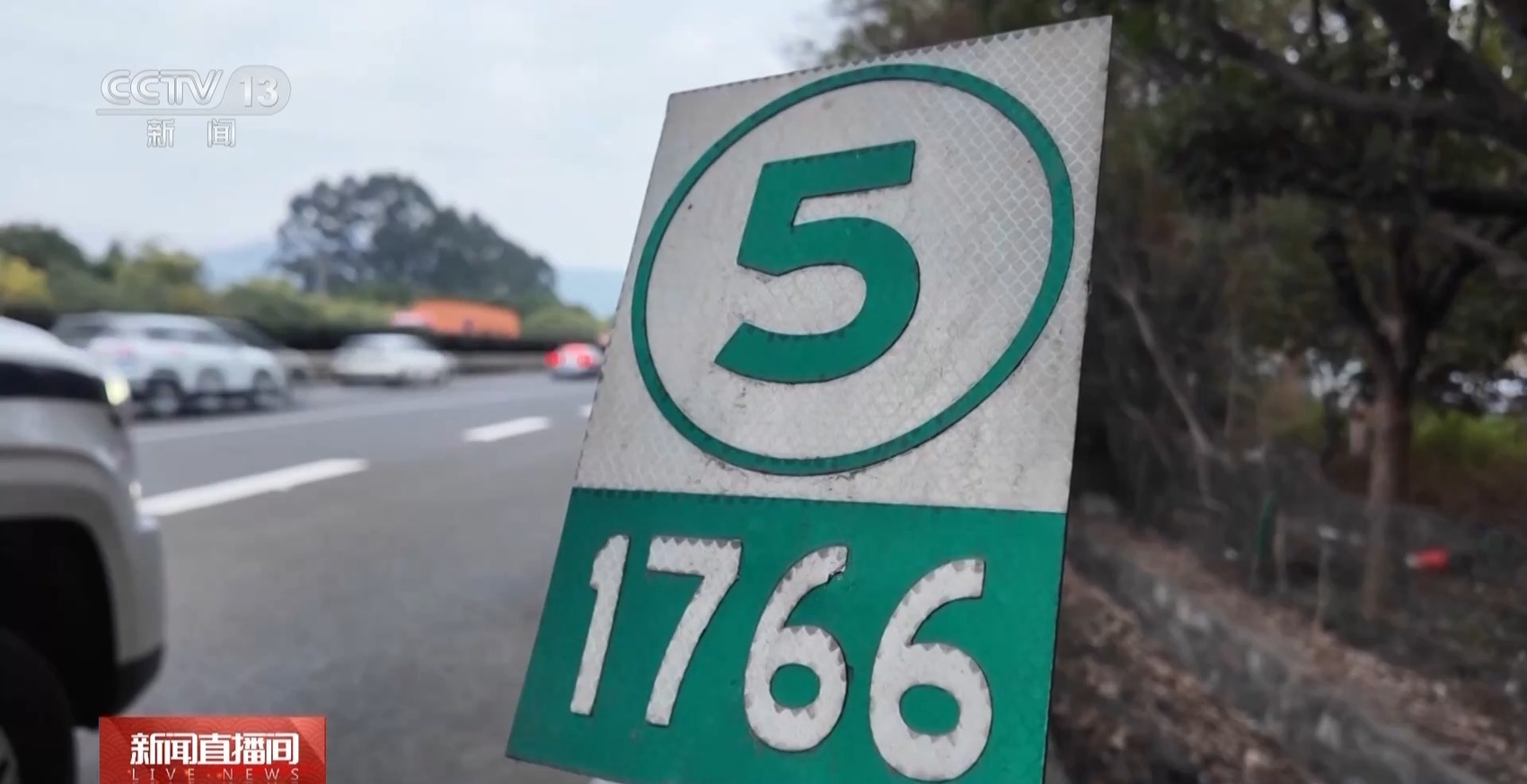 温州市公安局交管支队高速六大队一中队民警 纪庆来:在高速公路上,每隔一百米有一块百米桩提示所在位置,像我身边的这块百米桩,它下面的数字代表公里数,上面的数字代表百米数,综合起来我们就知道我们现在所处的位置,是在沈海高速公路福建方向1766公里500米处。报警的时候根据百米桩准确说明自己所在的位置,我们高速交警就能够快速锁定。
