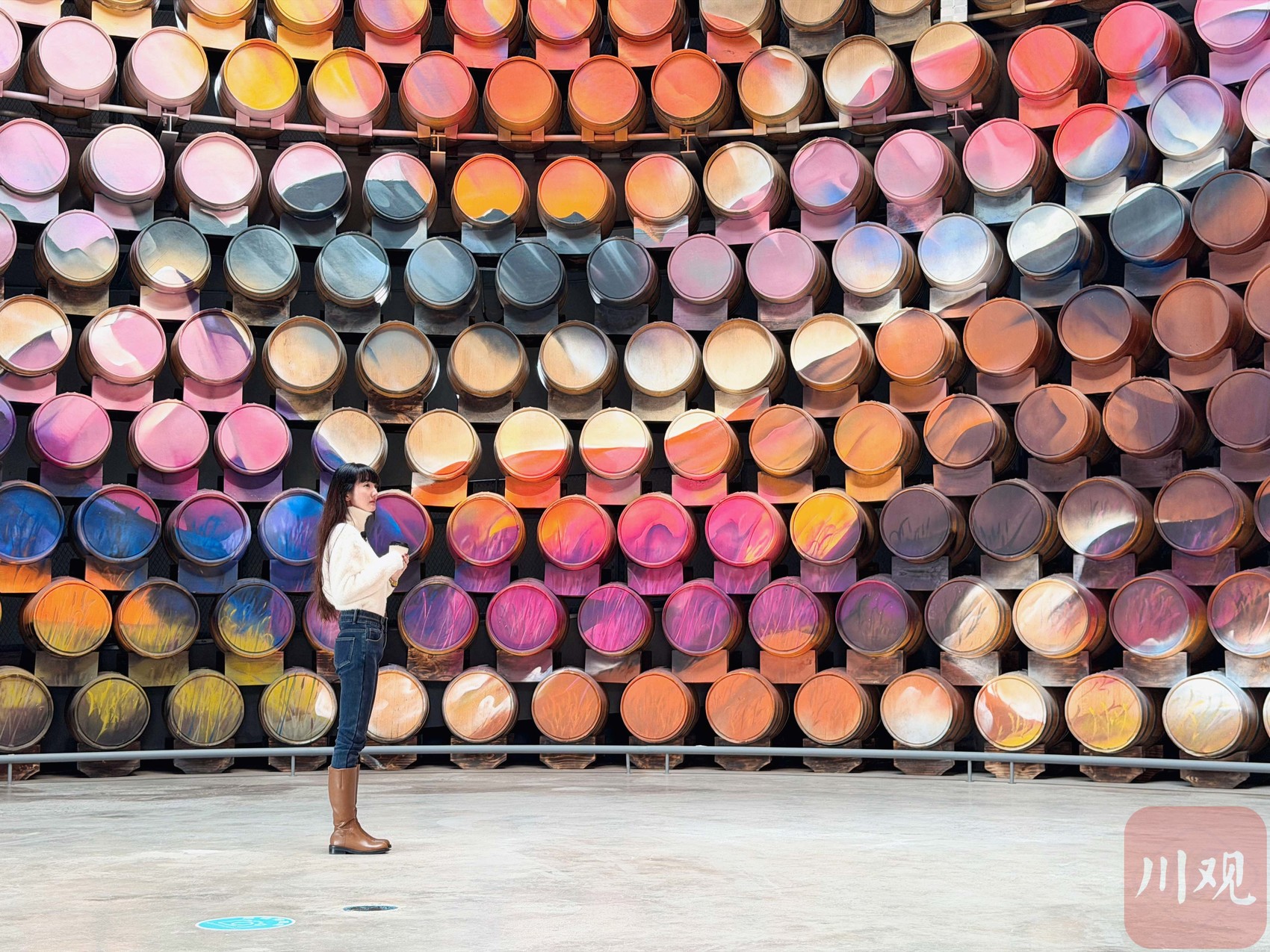 在桶陈中心,上千个陈酿桶经彩绘后,成为年轻人出片地。李强 摄