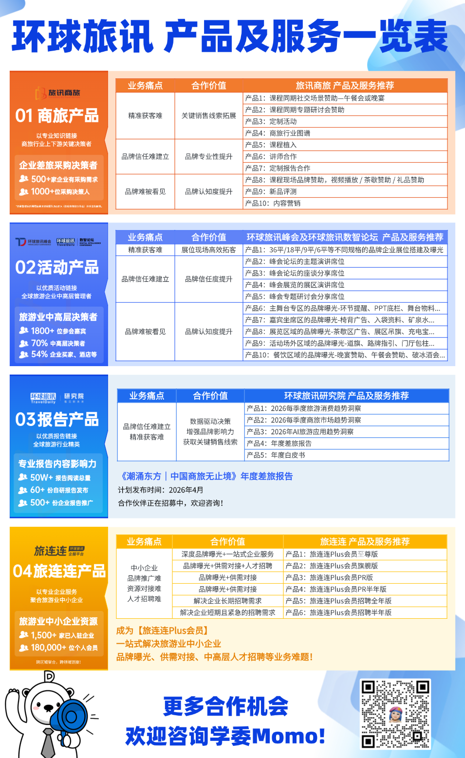 进入2026年,环球旅讯研究院将计划在4月2日发布《潮涌东方|中国商旅无止境》年度差旅报告,首次尝试对中国差旅市场总量进行结构化拆解。此后,旅游营销、国际差旅、AI应用等多份专项白皮书将陆续发布。