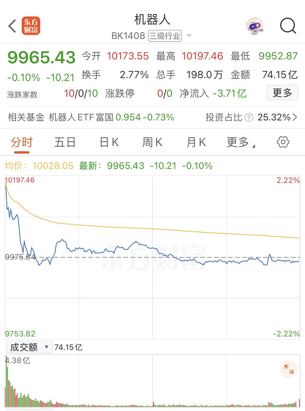 科技股是今日资金进攻的重点方向。尤其是机器人赛道,开盘直接高开近2%,但帅不过三秒就开始一路往下滑,上演了一出高开低走大跳水。消息面上,春晚机器人天团在全网讨论度直接拉满。