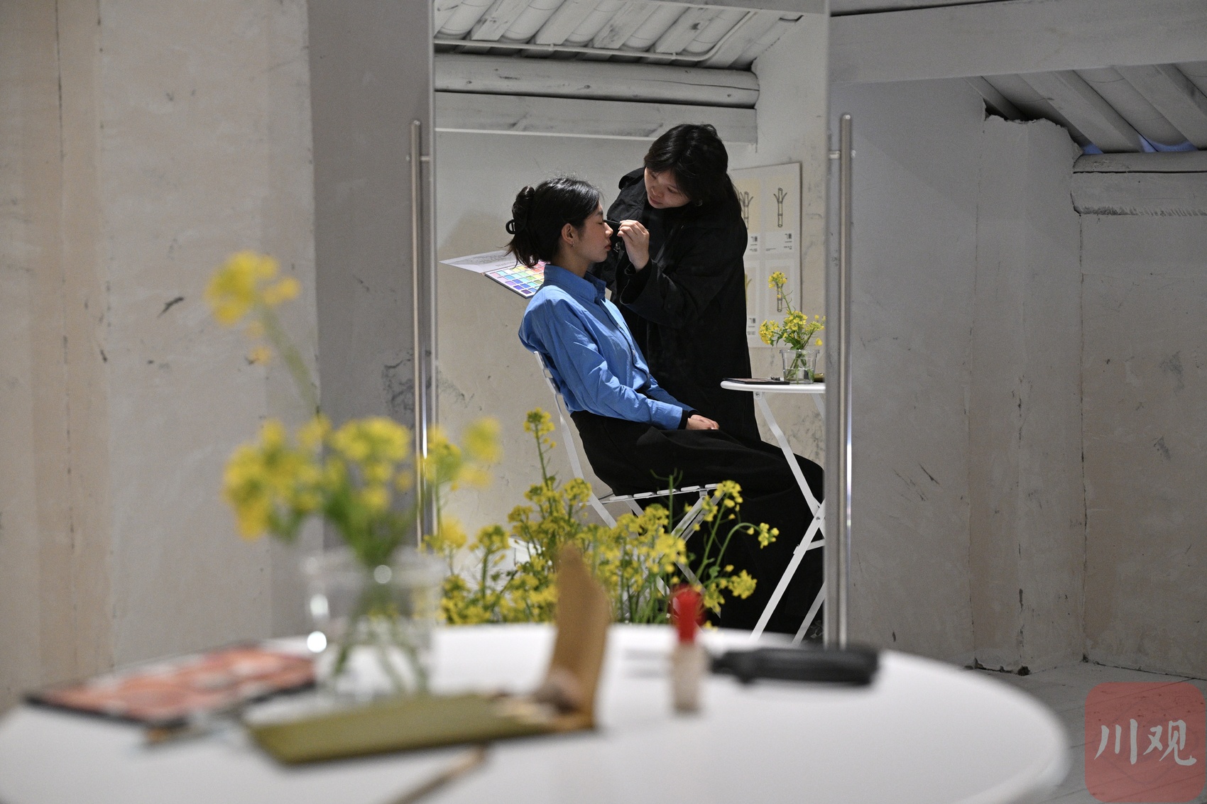 彩妆所内,游客体验充满田园风情的“油菜花妆”。