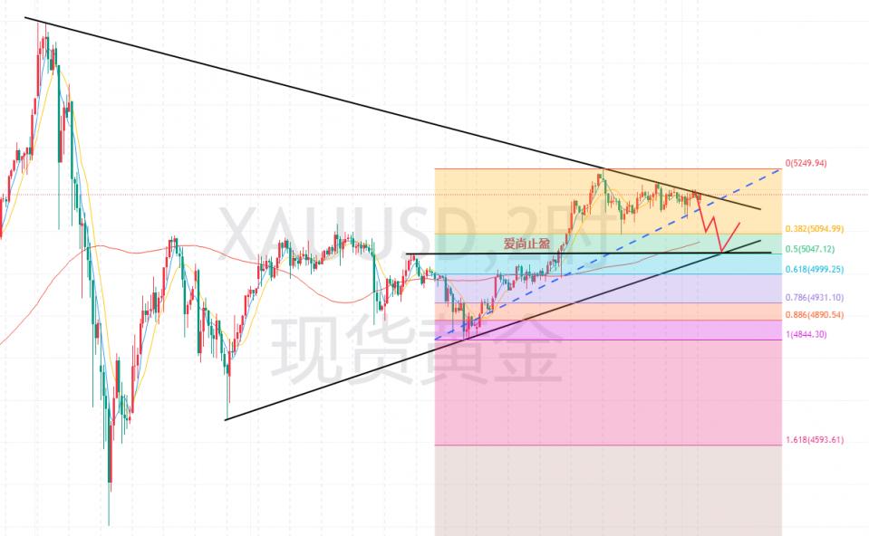 在昨天的分析中,我明确指出了黄金4小时趋势线压力位,并依托4小时趋势线压制5205做空看回落,午后黄金,刚好反弹5205附近后受阻回落,欧盘黄金在反抽后继续走低,欧盘不强,那么,美盘还需继续空,所以,美盘前,黄金反抽5187后我们继续做空,这个位置,昨天亚欧盘下跌反弹的618压力位,价格也是刚好触及此位后走回落,美盘黄金,如期走回落,晚间,在受到美伊谈判的避险影响,黄金开始快速反弹,凌晨最高反抽至5201附近,再次受到趋势线压制走回落,日线最终收取一根纺锤形态的阳线,这种收线,当前还是看震荡。