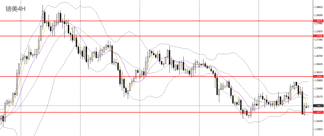 镑美昨日深度跳水,日线RSI位于50下方,4小时失守1.3450一线支撑,短线趋势再度转弱,1.35附近承压可进空。