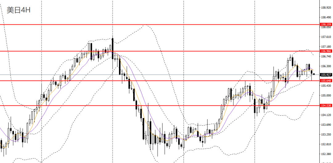 美日昨日收十字阴线,4小时回踩155.60附近企稳,但多头力量有限,156.30-156.40一带仍面临强压,可保持观望,如再度于156.30一线承压可进空。