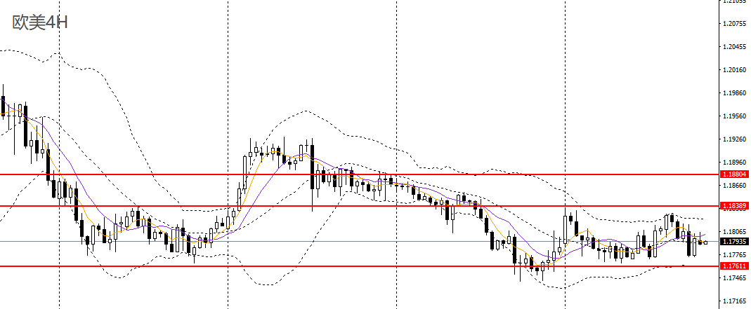 欧美昨日微幅收跌,仍徘徊于5日、10日均线,日线RSI位于50左右,4小时仍于1.1760-1.1830区间内震荡,可暂时观望,等待进一步突破。