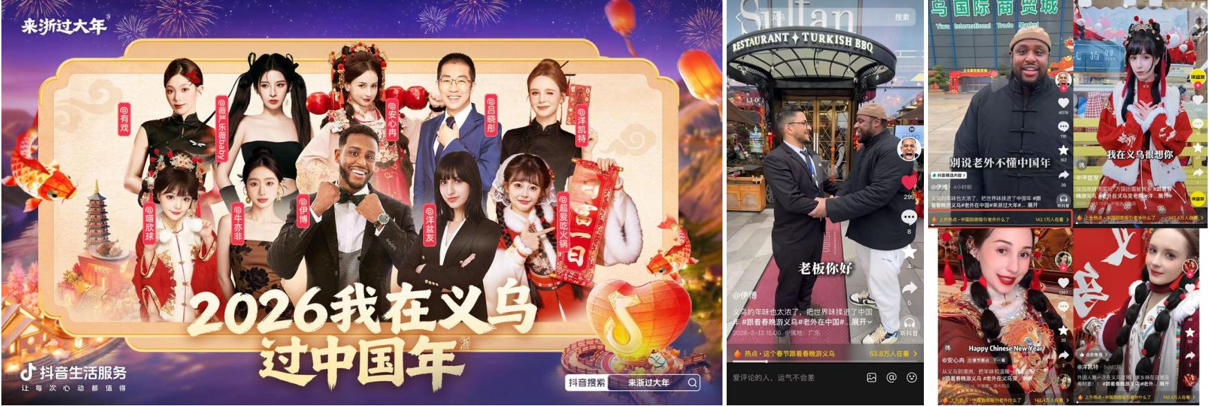 如果给义乌的春节画个像,它应该是这样的画面:春联灯笼旁边是来自中东的坚果礼盒,本地居民的拜年声里混着各国语言的问候——这就是“世界超市”独有的年味,传统又国际。作为全球小商品集散中心,义乌的特别之处就在于,它的春节底色既保留着最传统的中国韵味,又被天然赋予了一层国际化色彩。商家守着这么好的年味素材,怎么才能让更多人看见?