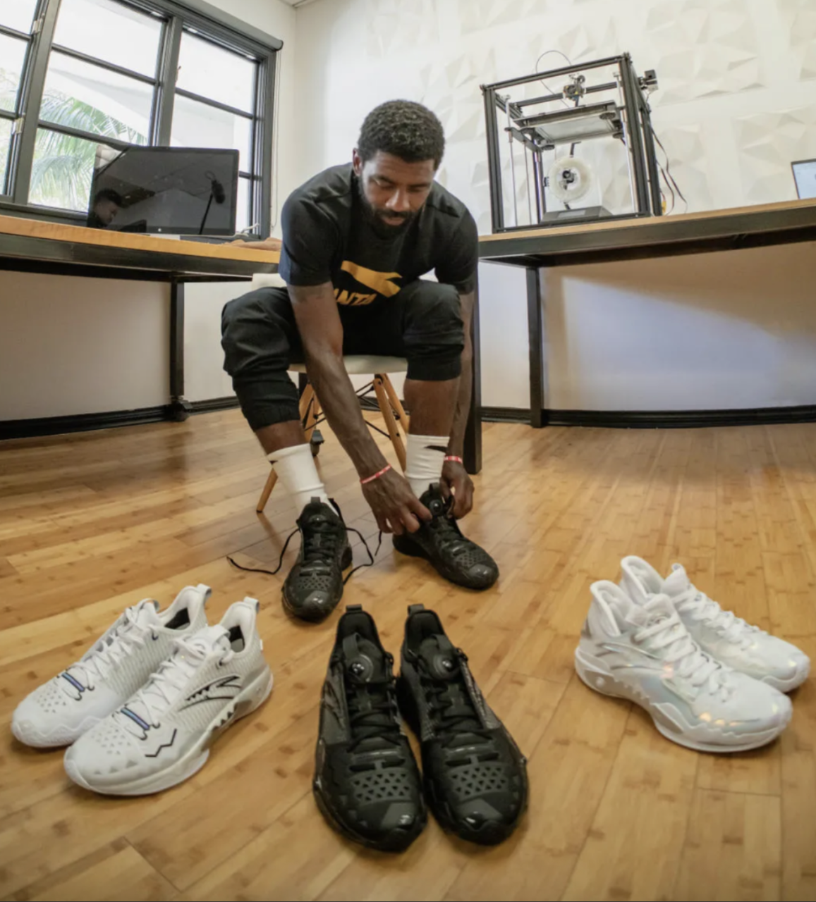 2023年,当欧文因场外风波被耐克放弃时,安踏不仅签下了他,更任命其为全球篮球代言人兼首席创意官,他不仅可以主导专属Logo和个人产品线设计,还能围绕个人产品线推出更多支线产品。