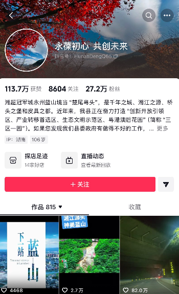 “我们在不久前印发了《蓝山县引导党员干部运用新媒体推动工作落实的实施办法(试行)》,下一步,也会鼓励本地干部多运用新媒体平台,更好地收集群众诉求,同时也更好地宣传蓝山。”上述宣传部相关负责人告诉记者。