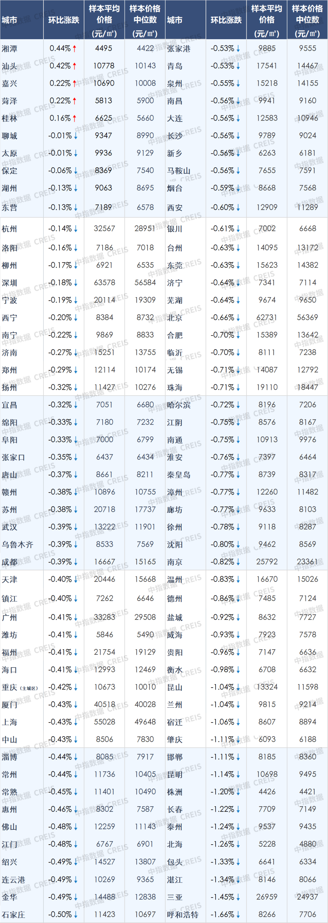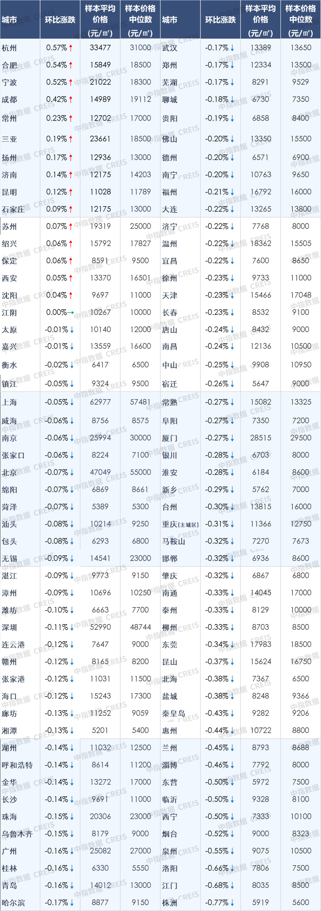 图:百城新建住宅价格及环比变化