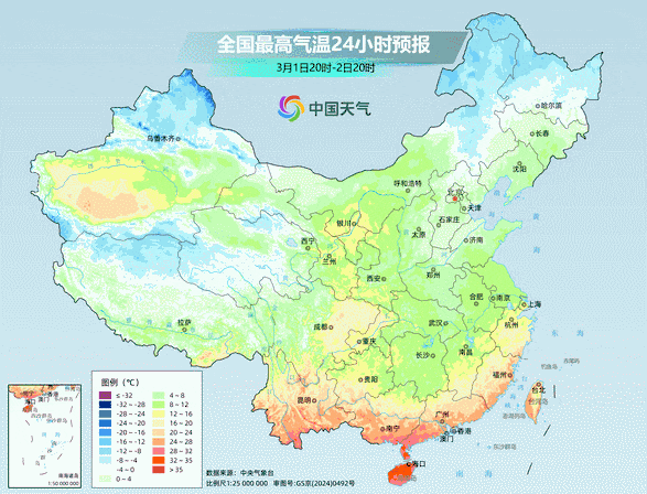 西南、华南等地气温则以偏高为主,今天广西、海南不少地方最高气温超过了30℃,明天起气温将有所下滑,一些地方最高气温降至25℃以下,体感凉爽不少。