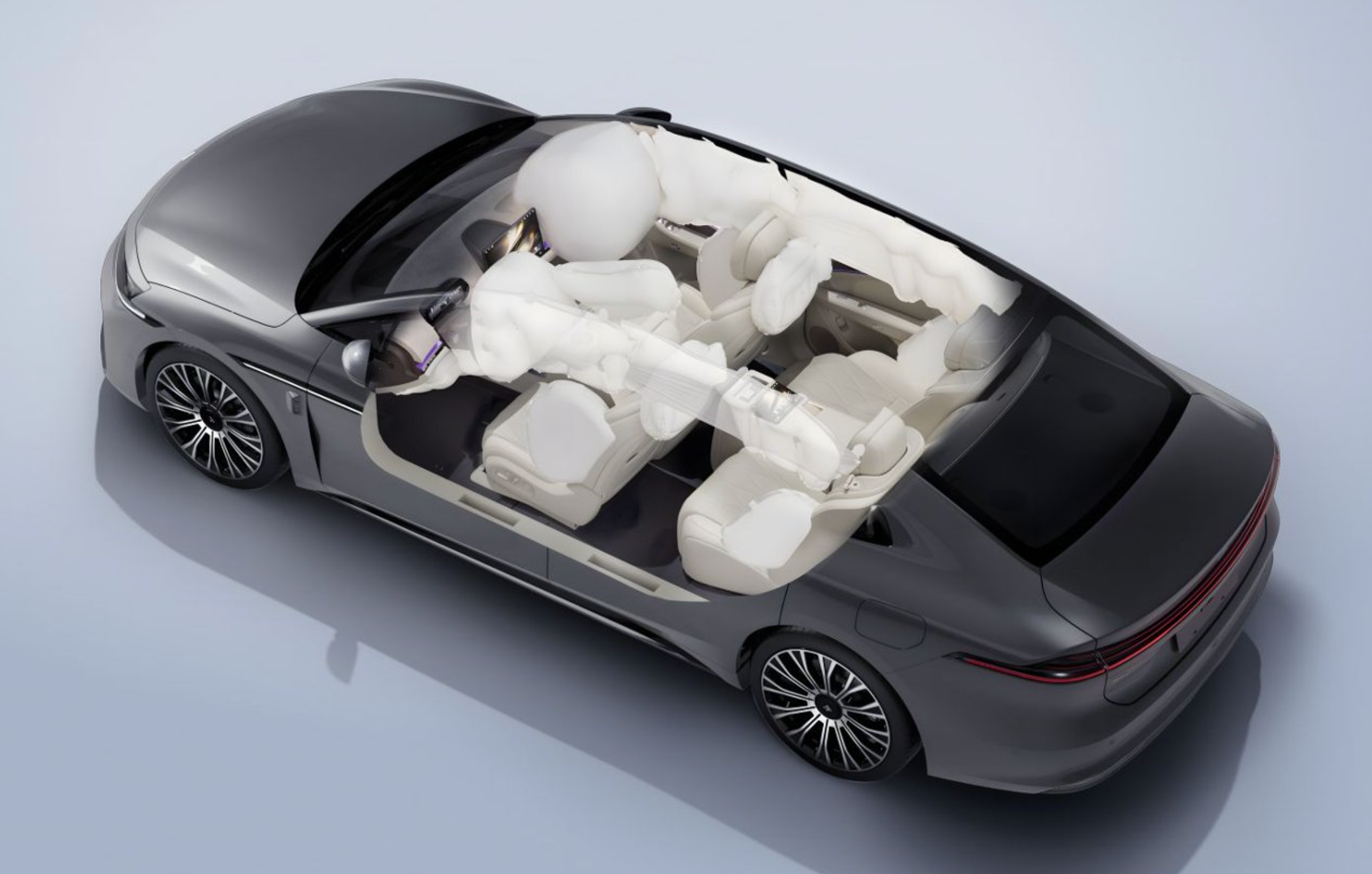 在安全层面,昊铂 A800 将安全作为核心设计底线,整车累计完成 61 项测试,测试数量达到国标的 6 倍。在被动安全方面,新车配备了同级最多的 14 个安全气囊,也是国内同级首个标配二排正面气囊的车型,气囊的全面布局能够为车内前后排乘客提供全方位的碰撞防护,兼顾驾乘人员的安全。
