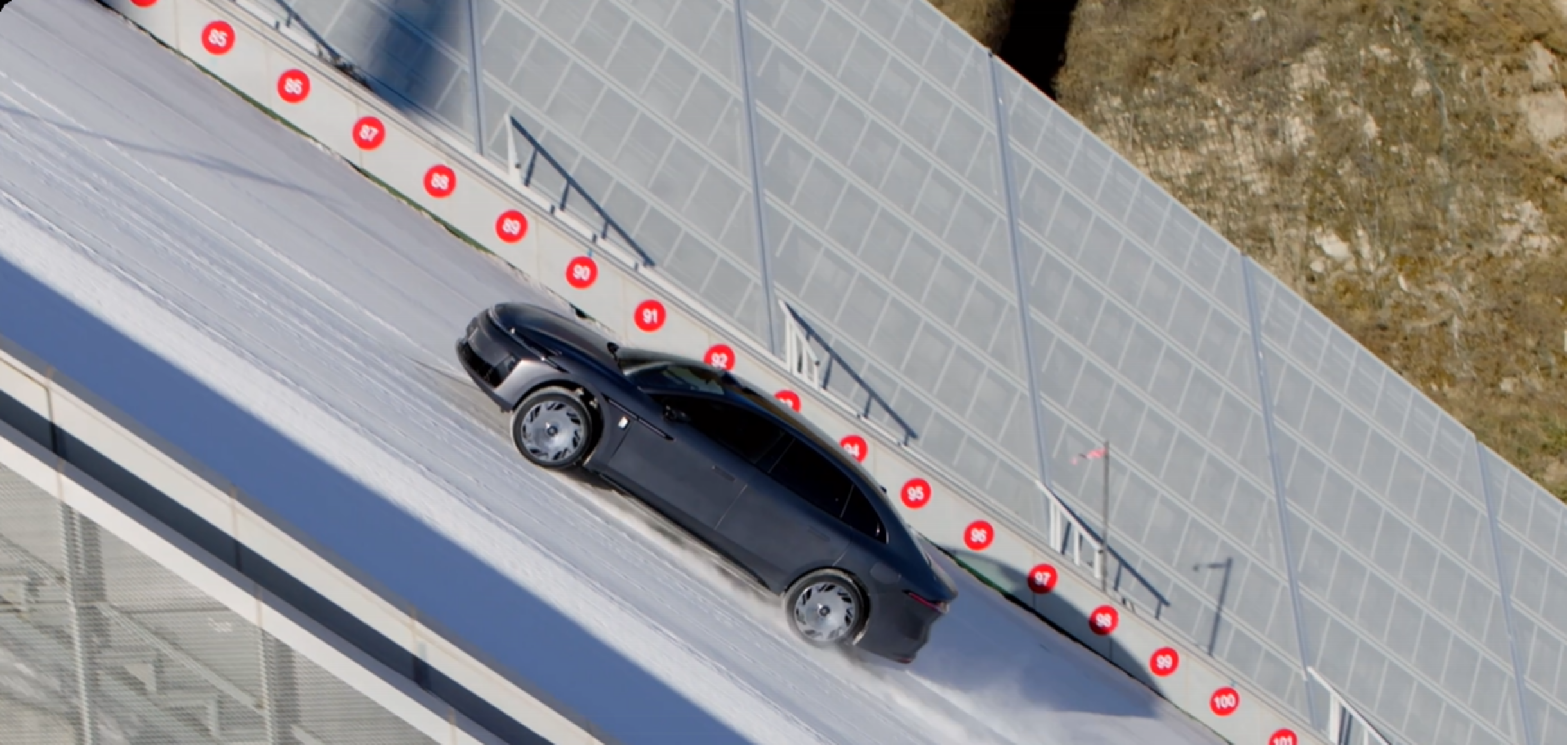 其中的 “负扭矩输出功能” 为转向操控提供了技术支撑,通过后电机产生反向扭矩,能在各类转弯场景中 “锁住” 转弯侧后轮,提升转向精准度。为了验证底盘系统的性能,昊铂 A800 在上市发布会前,挑战了国家跳台滑雪中心 “雪如意”,面对 85 米垂直落差、125 米坡长、37.1 度最大坡度的极端路况,克服冰雪湿滑、陡坡等问题,完成了行业首个双人冲坡挑战,展现了其爬坡能力。