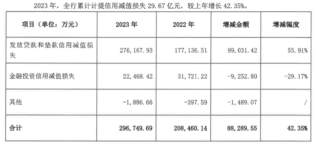 二是信用减值损失大幅增加,进一步侵蚀利润。在信用风险上升的背景下,华润银行不得不加大拨备计提力度,以覆盖潜在的信贷风险。数据显示,2023年该行计提信用减值损失29.67亿元,同比增长42.35%。其中,发放贷款和垫款信用减值损失占比较大,达27.62亿元,增幅55.91%。;2024年计提信用减值损失42.92亿元,同比增长44.64%。换句话说,2024年华润银行每赚1元利润,就要计提约9.64元的信用减值损失,利润被风险计提大幅侵蚀,这也是其净利润暴跌的最直接原因。