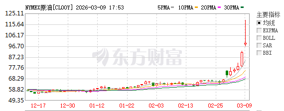 这一天,国际油价上演了史诗级暴涨:纽约WTI原油期货盘中一度涨超30%,突破每桶120美元,创下三年多以来新高。是自2022年俄乌冲突以来,国际油价首次重返三位数时代。