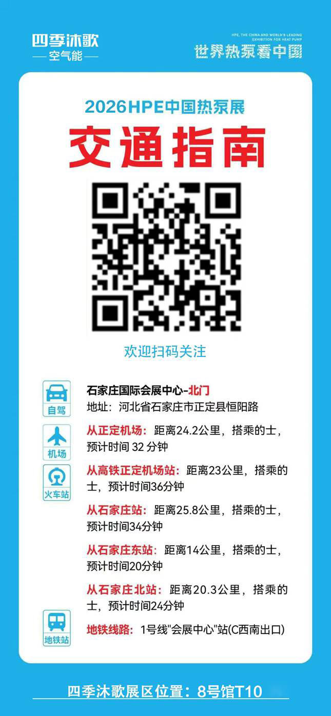 3月16日-18日,备受瞩目的第16届中国热泵展将在石家庄国际会展中心盛大启幕!四季沐歌空气能将携全场景绿能解决方案与前沿技术重磅登场,请锁定8号馆T10展区,四季沐歌诚邀行业同仁、合作伙伴、终端经销商共赴年度盛会,抢占低碳赛道新机遇!