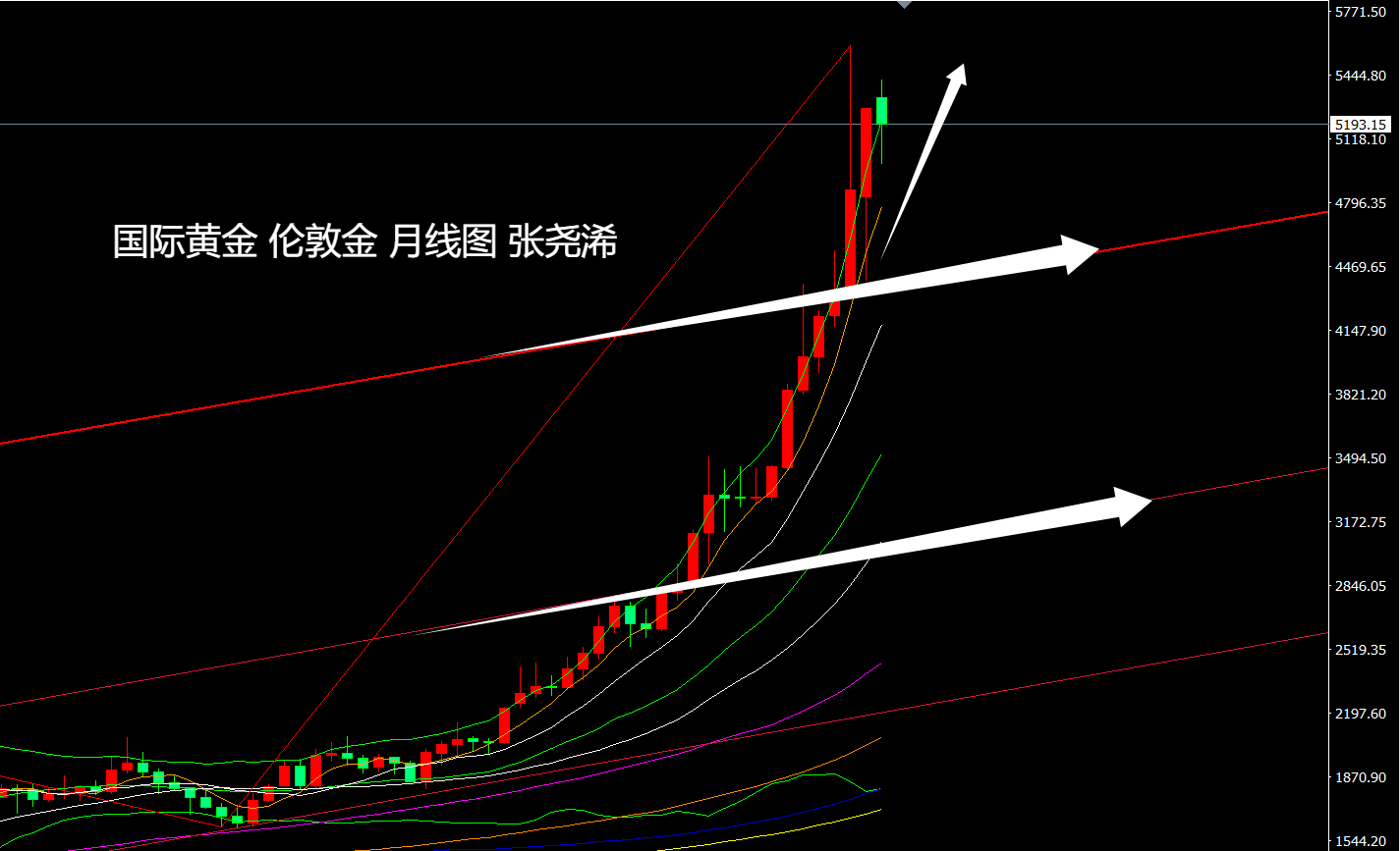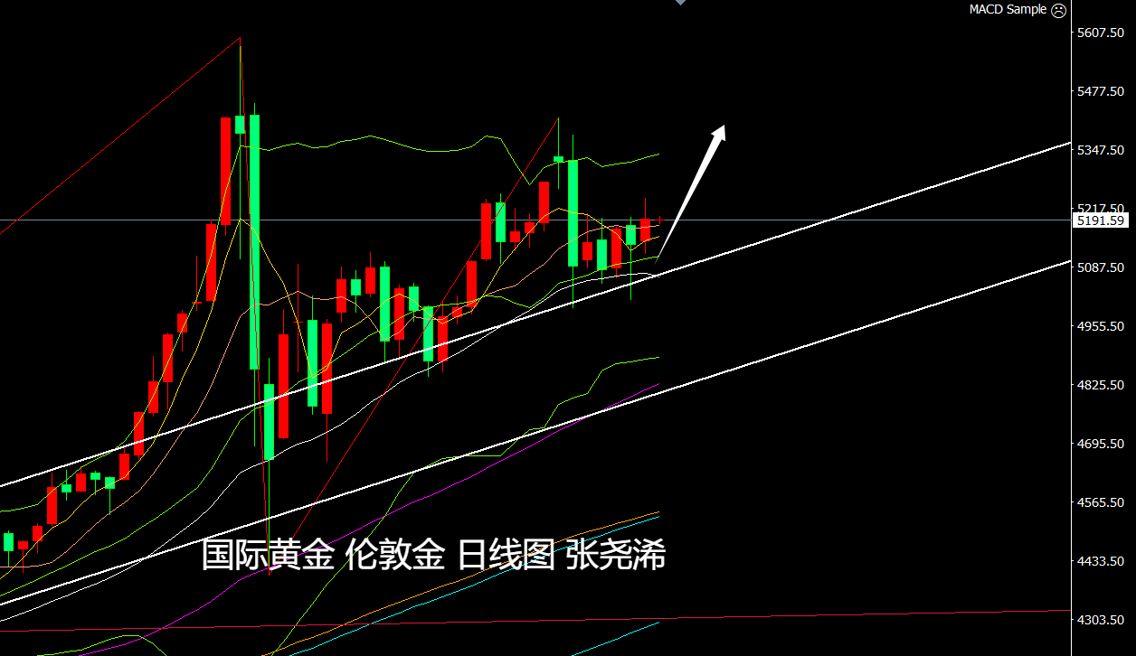 反之如跌破趋势线支撑收线4300关口,则暗示牛市结束,将进一步跌至3500美元乃至更低位置3000关口。但目前来看,此概率较小。