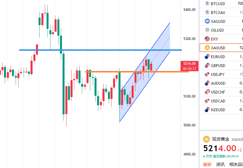 黄金回踩5188附近多,防守5174,目标看5230/50一线,反抽初见5255附近空,防守5268, 目标看5220/5200一线