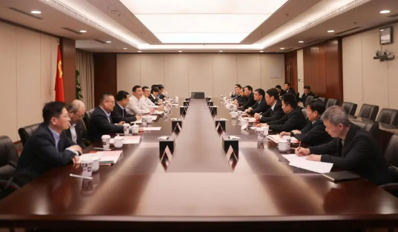 3月9日,中煤科工西安院、杭州院党委书记、董事长付元一行到徐矿集团考察交流,双方共话产业焕新升级路径,共谋协同创新发展新篇。徐矿集团党委书记、董事长吴宁,总经理、党委副书记于洋参加活动。