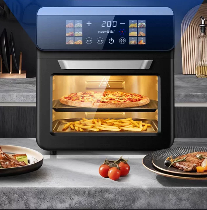 核心亮点:6.5L黄金容量,适配2-4人小家庭,既能满足日常用餐需求,又不会浪费空间;旋涡式360°热风循环+精准温控技术,加热均匀,烤东西不用翻面也能外酥里嫩,避免局部焦黑或夹生;高清大彩屏搭配10大预设菜单,发酵、解冻、干果等多功能一应俱全,新手老人都能轻松上手;食品级金属腔体,不易滋生细菌,干净卫生,开门自动断电+关门记忆程序,安全又便捷;机身小巧精致,横向宽度仅29cm,不占厨房台面空间,小户型也能轻松容纳。