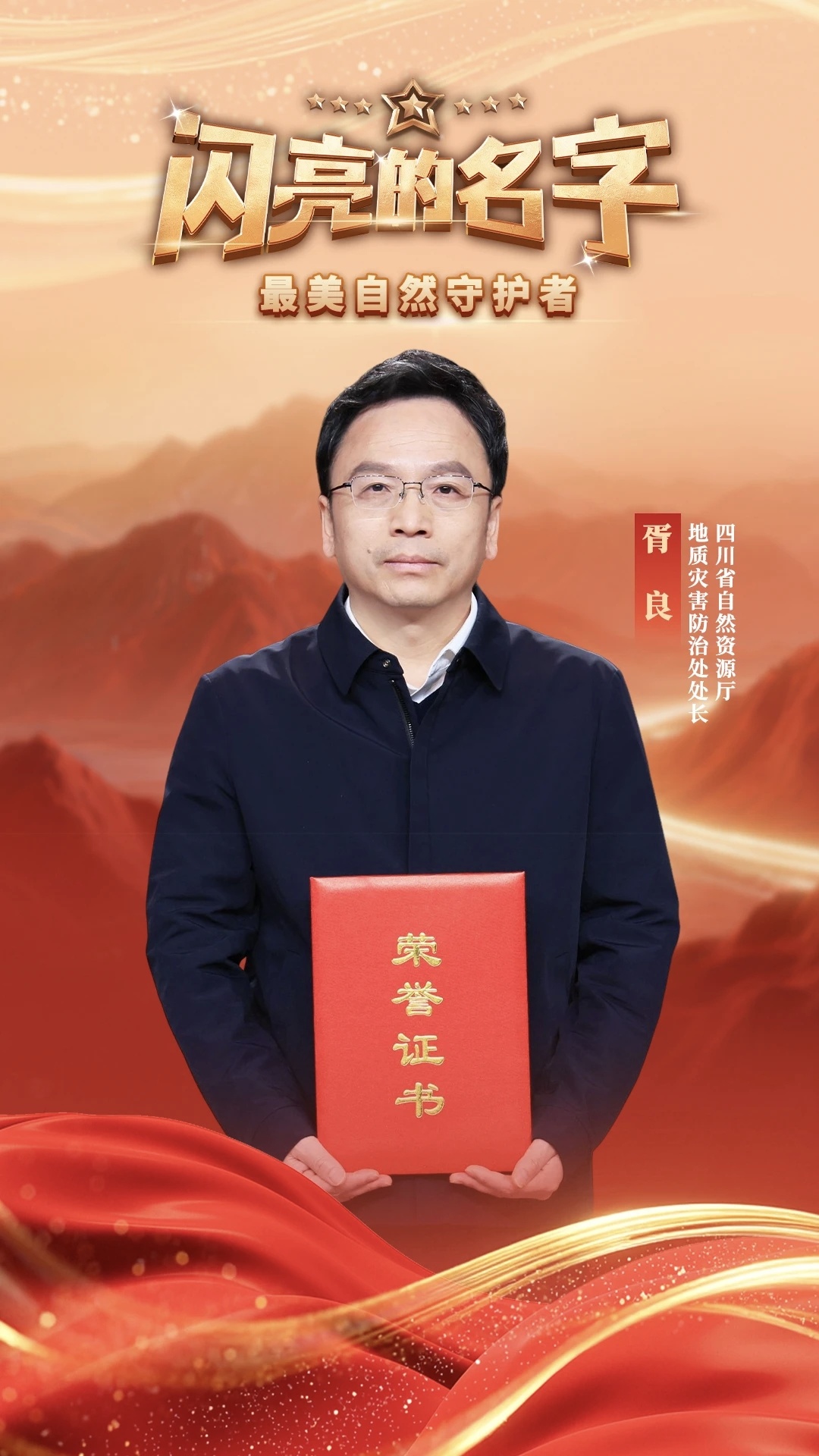 3月12日,中央宣传部、自然资源部向全社会宣传发布“最美自然守护者”。9名“最美自然守护者”中,四川省自然资源厅地质灾害防治处处长胥良入选,成为四川第二位获此殊荣的自然资源工作者。