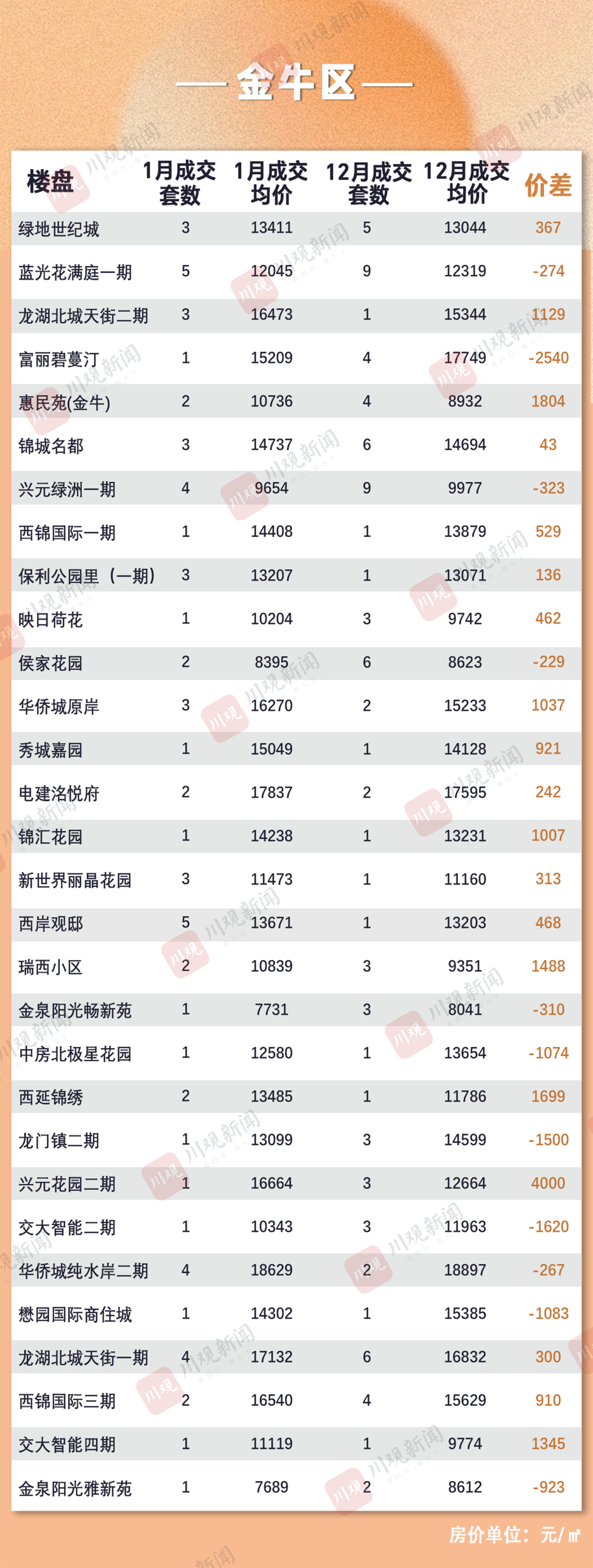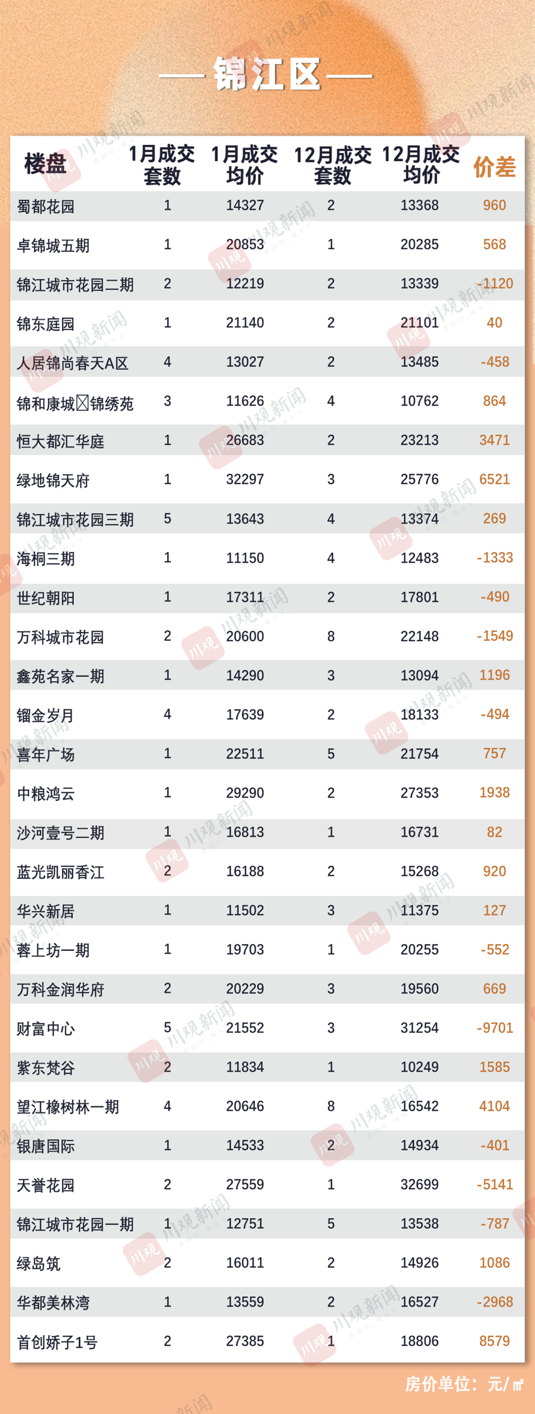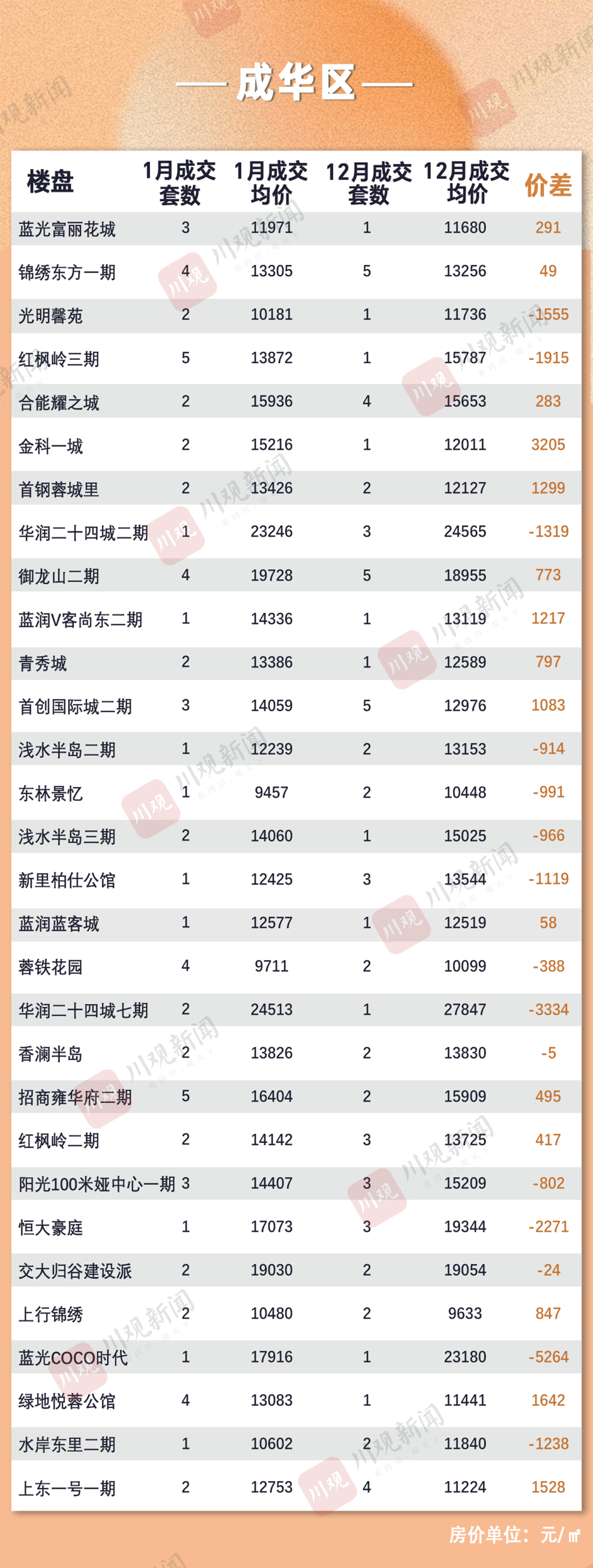 “川观生活指数” 2026年1月成都楼盘真实成交价格大全来啦!