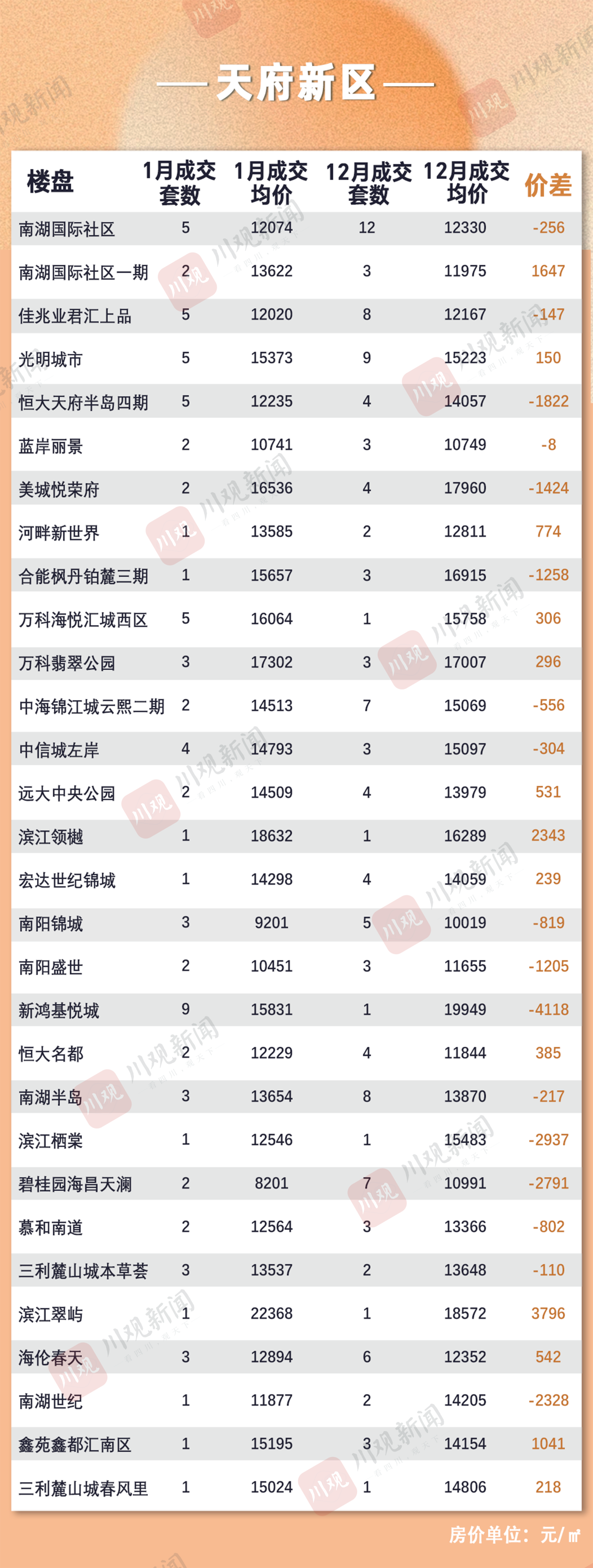 川观新闻联合成都业内知名平台“都成新楼市”微信公众号,持续带来覆盖热门片区、楼盘维度的房价干货。(《2025年12月成都楼盘真实成交价大全来啦丨川观生活指数 一数知四川》←←戳我了解)