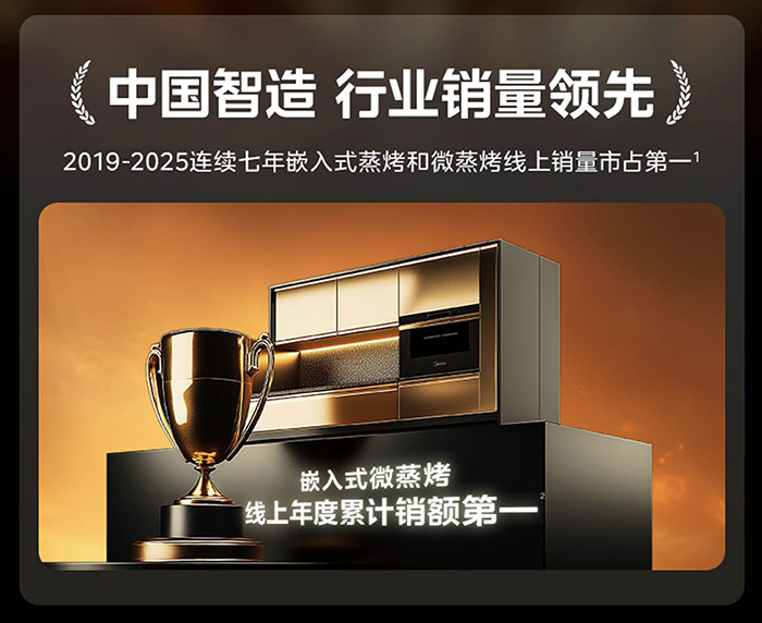 更重要的是,这套能力已经经过市场验证。2019年至2025年,美的嵌入式蒸烤和微蒸烤连续七年线上销量市占第一,销售网络覆盖160多个国家和地区。