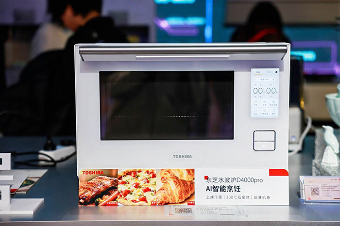 值得一提的是,此次AWE京东智能家电家居展台展出的美的旗下品牌东芝,全新推出的产品——水波炉D4000pro,其作为台面式微烤产品延续了另一种实用路径。它采用40cm超薄机身,可灵活摆放于餐边柜、厨房、岛台或嵌入柜体等位置;同时配备全隐藏烤管、纳米陶瓷内腔和5种自清洁模式,尽量减少清洁死角和后续维护负担。对用户来说,这类设计的价值不只是“更好看”,而是让微蒸烤真正成为可以长期共处的家居设备。