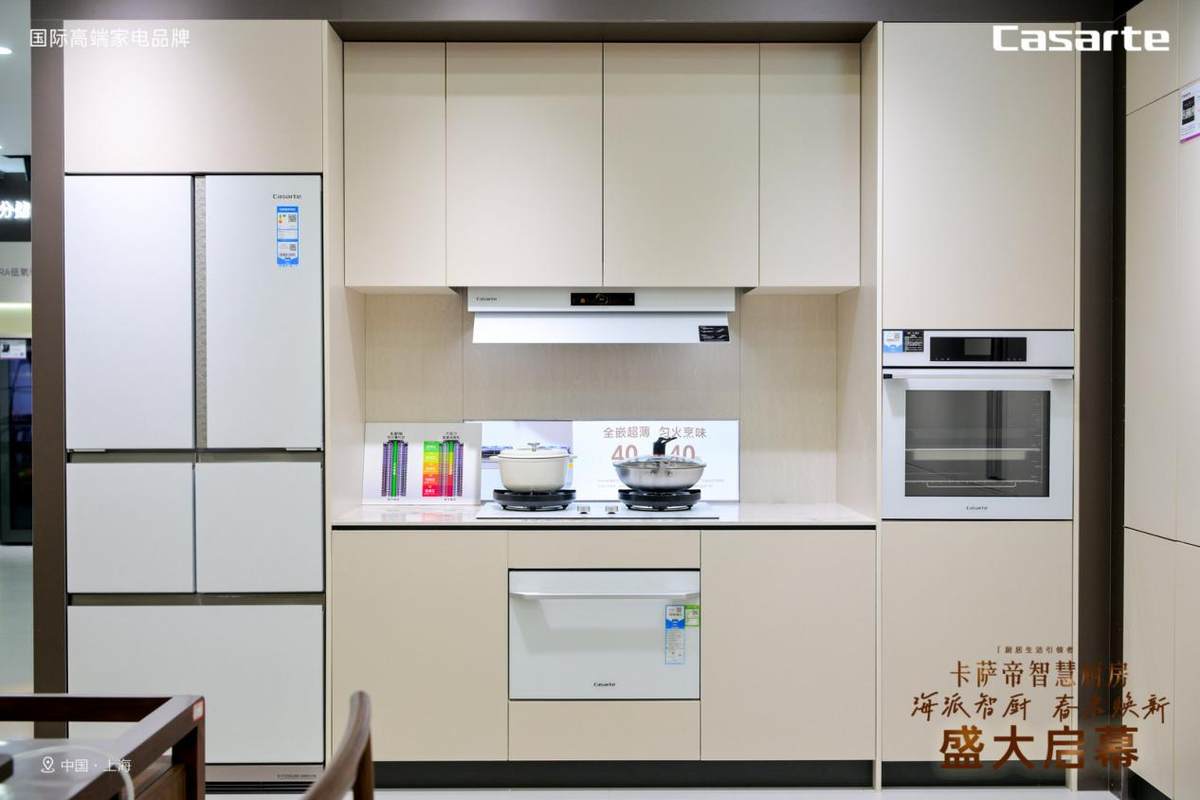 不止AI智慧,体验中心更兼顾美学与社交属性,为用户提供情绪价值。成厨房内,卡萨帝原创平嵌冰箱无缝嵌入橱柜,线线相通、面面齐平,加上全嵌烟机,为厨房保留秩序与美感。全新发布的三次方冰箱,极致空间利用和美学设计,成为厨房里的点睛之笔。
