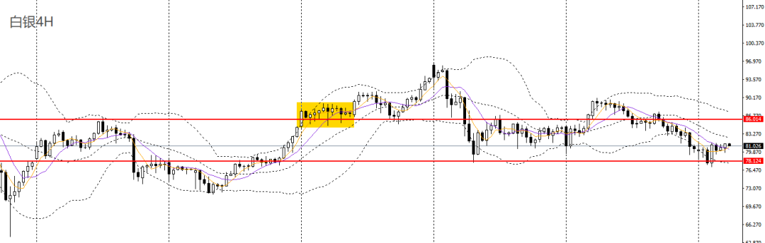 白银收十字阳线,日线RSI位于50左右,4小时守住78一线支撑,重回此前震荡区间,可暂时观望。