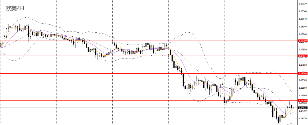 欧美日线呈平头底部,上探5日均线,日线RSI小幅回升,4小时触及1.1530附近阻力回落,如无法升破,多单可暂时离场,稳健者建议观望。