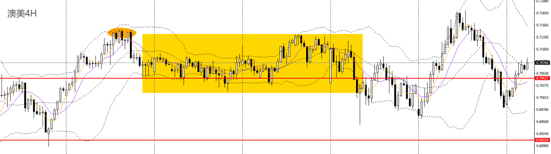 澳美强势拉涨,5日、10日均线走平,4小时仍处于区间震荡格局,上方密切关注0.71,0.7140附近阻力,如进一步升破,后市有望上探0.72附近。