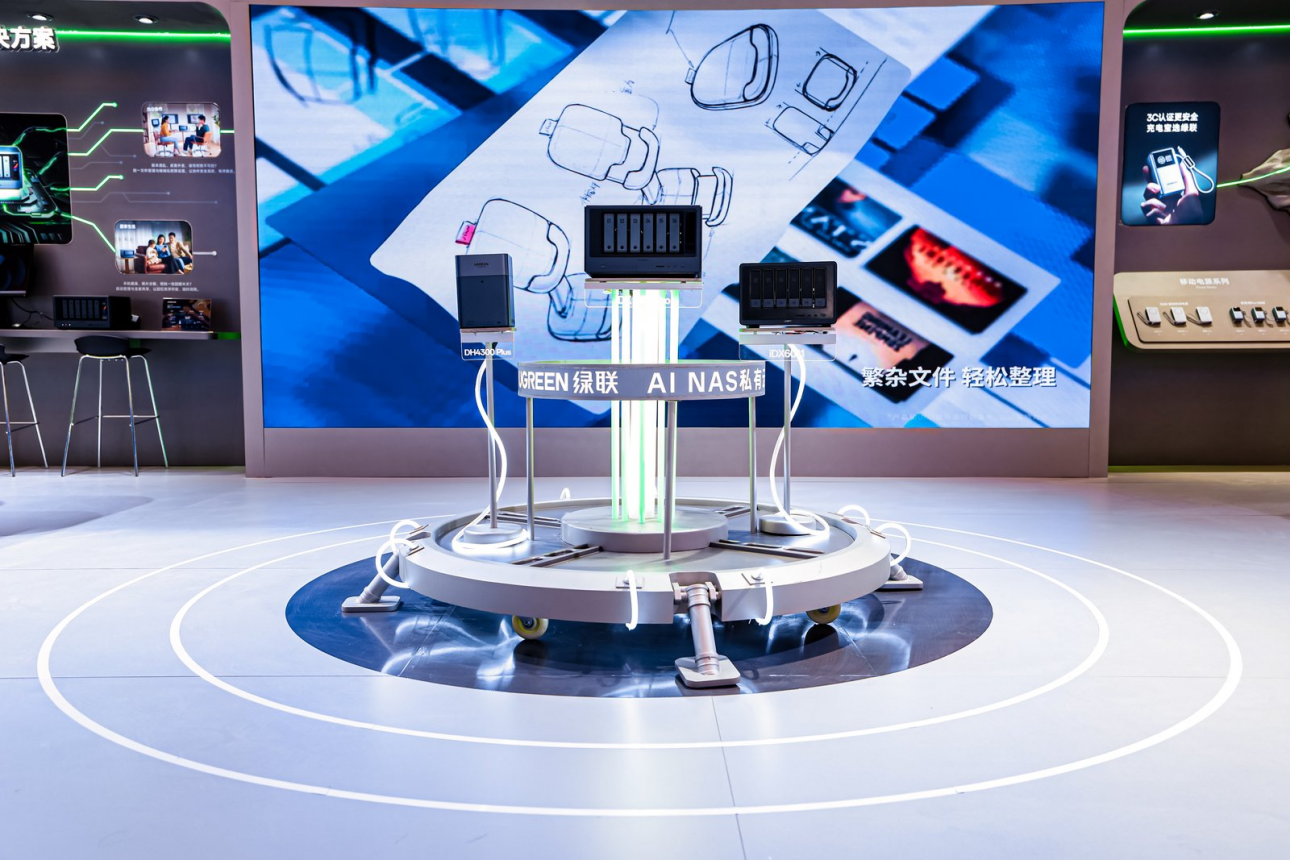 中国科技品牌绿联以「联接 AI,智护未来」为核心主题,以可感知的场景化展示空间为载体,集中展出以AI应用为驱动的NAS私有云产品矩阵、新一代安全快充等重磅新品,同步亮相30余款数码产品。