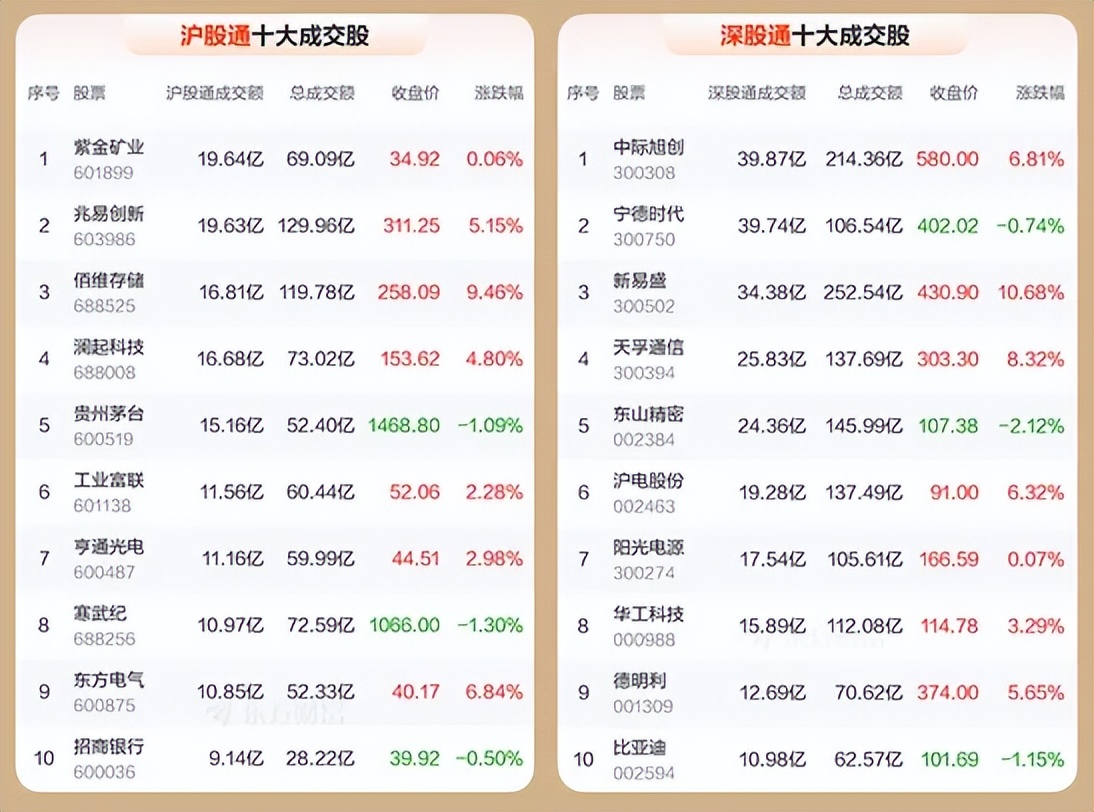 4、北向资金共成交2636.57亿元,占两市总成交额的12.89%——