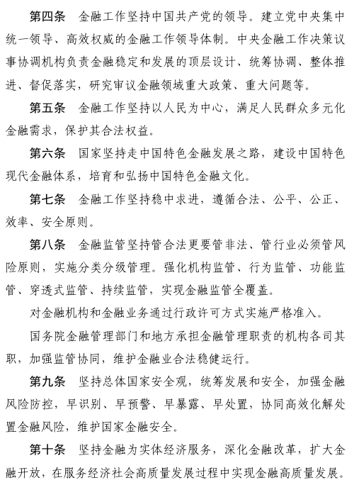 一是明确金融工作方向性总体性要求。强调坚持和加强党中央对金融工作的集中统一领导,坚持以人民为中心。确立建设金融强国、有力支撑以中国式现代化全面推进中华民族伟大复兴的立法目的。鲜明体现“中国特色金融发展之路”“中国特色现代金融体系”等要求。