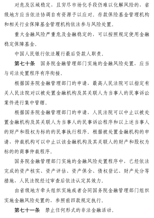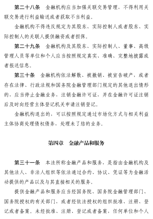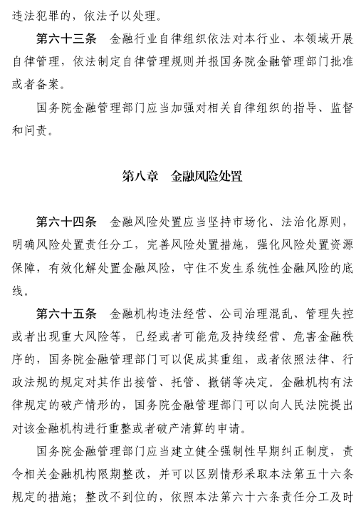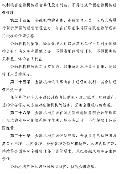 三是规范金融机构行为活动。对金融机构准入、经营、退出实施全周期管理。明确金融机构及其分支机构设立、重大事项变更须经批准。