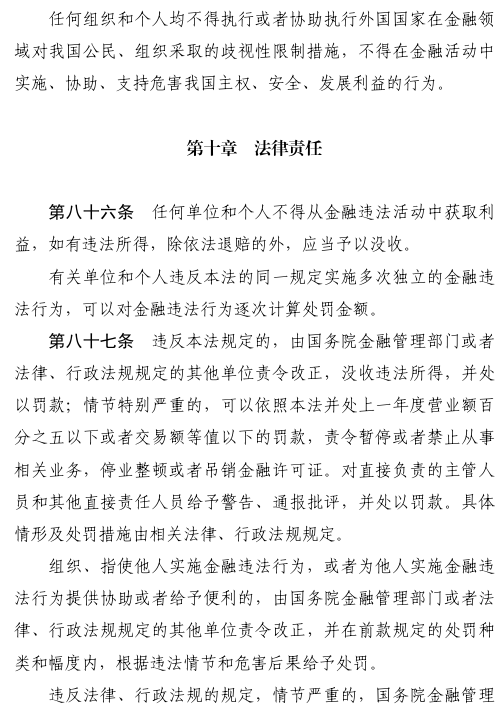 九是强化法律责任。加大对金融领域违法违规行为的惩处力度,提高违法成本,进一步加强制度约束。
