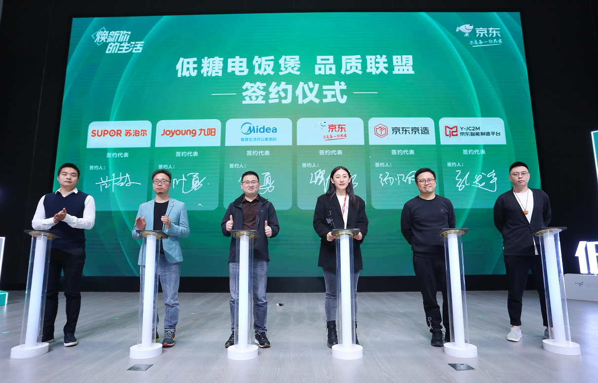 在这一背景下,京东家电本率先携手美的、九阳、苏泊尔、荣事达、京东京造联合发力,举办京东低糖饭煲品鉴论坛,明确定义了低糖电饭煲这一品类。并联合中国家用电器研究院,对京东平台售卖的多款产品进行检测。中国家用电器研究院更是携手京东家电与各大品牌共同制定、发布最新团体标准——《低糖电饭锅烹饪的米饭品质评价技术规范》,助力消费者挑选出真正对健康膳食有帮助的品质优品。此外,为了今后更好的推动行业健康发展,为消费者持续提供高品质的焕新产品,京东、美的、九阳、苏泊尔、京东京造品牌还在会上成立了“品质联盟”,承诺未来将严格按照最新团体标准生产、销售低糖电饭煲产品,为消费者的健康生活保驾护航。