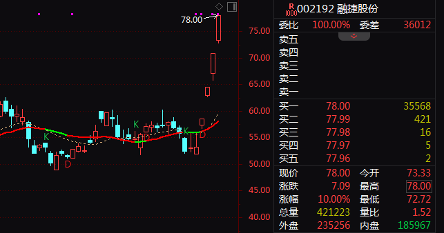 锂电产业链走强,融捷股份(002192)4连板,石大胜华2连板,江特电机、金圆股份、盛新锂能、赣锋锂业、海科新源、川能动力封涨停。