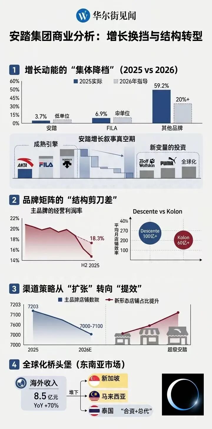 这也使得2026年的安踏呈现出一个相对罕见的状态:老引擎在放缓,明星引擎在克制,而新引擎尚未接力。