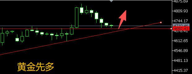日线上的MA10位于4660.而上升趋势线的支撑则位于MA5的位置4692附近,所以悬壶认为回撤靠近4692附近是可以多的,所以早间我们给出了4702的多单刚才已经提示获利4716,目前回落依然可以多,伊美的停火别管真假,只要没有落地前,金价依然看涨不变,所以日内4700下方依然可以找机会去多,防守4660,上方继续看4755-90.重点还是关注欧盘的强弱,欧盘强,美盘前回撤继续多;欧盘弱,美盘则看探底回升。除非跌破4660,不然不是很看好空头的延续!