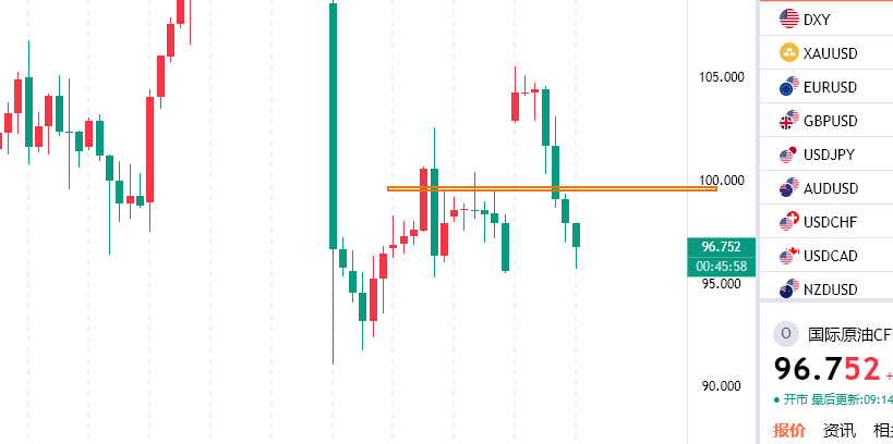 原油反弹99.4附近空,防守101,目标看95/92一线,回踩92附近多,防守90.3,目标看96/100一线