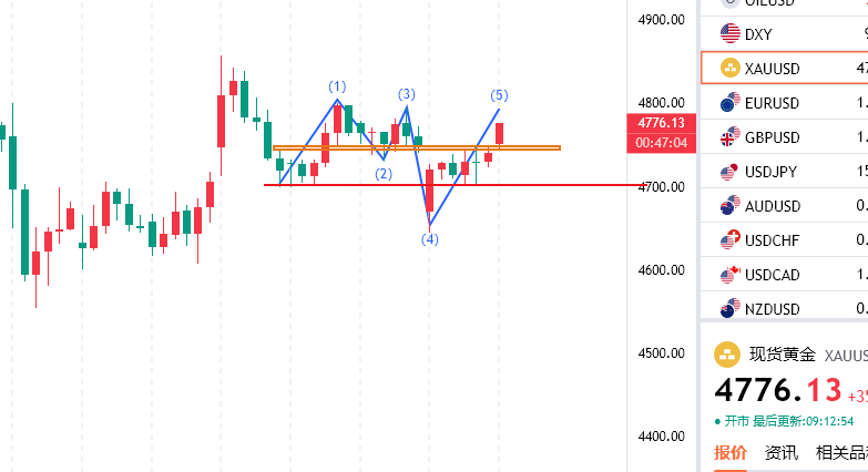 黄金回踩4752附近多,防守4737,目标看4785/4800一线,站稳看4830/50一线